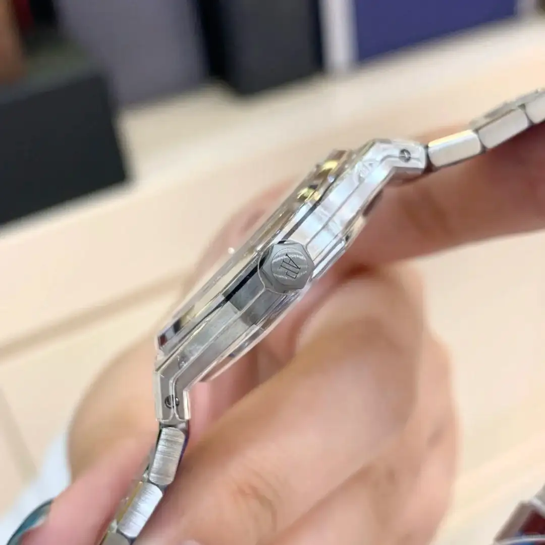 - Dial Replication: The dial features the classic Audemars Piguet logo and a textured pattern, reminiscent of the brand’s iconic designs. However, as a Super Clone or Swiss Replica, the quality of the dial’s finish and the precision of the details can’t rival those of the real thing.
