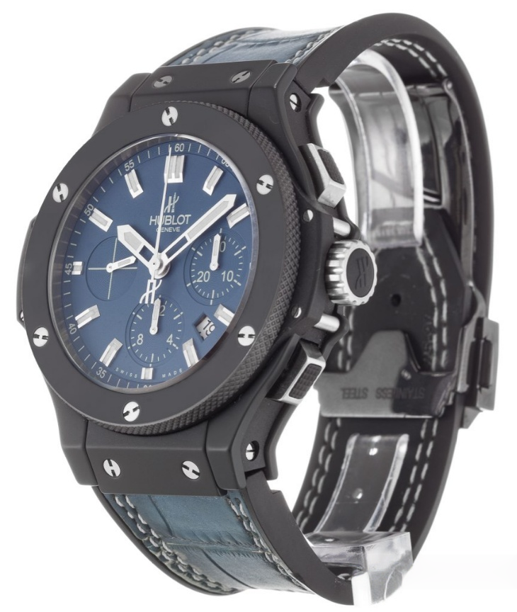- Design Identity: Incorporates HUBLOT’s signature design elements, like the iconic bezel structure. The blend of black ceramic and blue tones merges sporty elegance with luxury, making it a recognizable piece from the brand’s lineup.