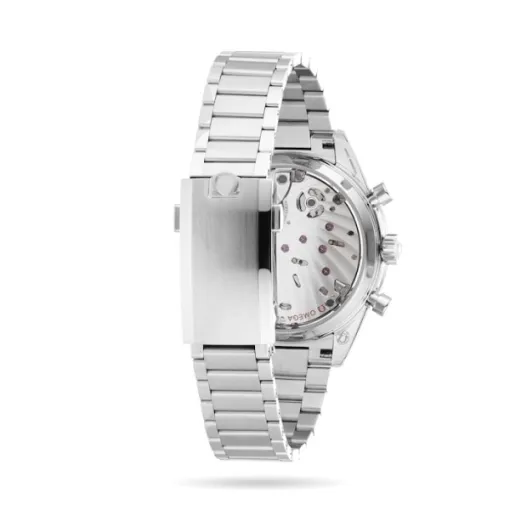 - 41.5mm Stainless Steel Case: Polished finish, classic Speedmaster design, exuding refined sportiness.