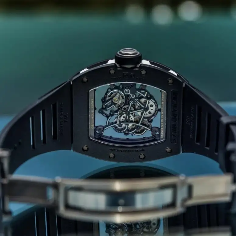 - Exclusive Movement: Equipped with the proprietary RMUL2 integrated movement. The balance wheel is clearly visible, encased in white sapphire shock absorbers. This design ensures superior performance, maintaining accurate timekeeping even in the face of daily activities or dynamic motions.