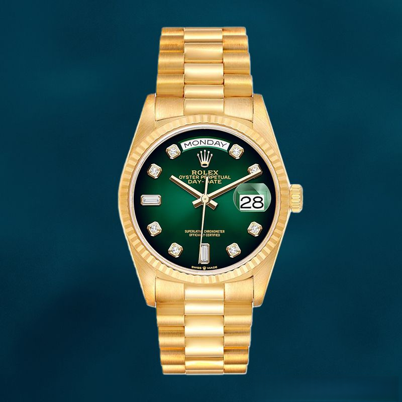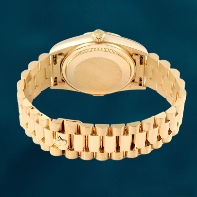 - Strap: The President bracelet, forged from 18K yellow gold, ensures a cohesive, luxurious aesthetic.