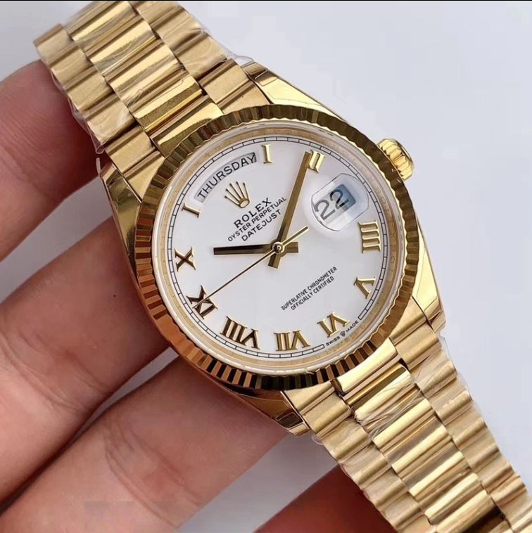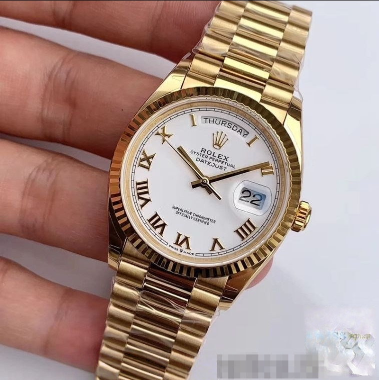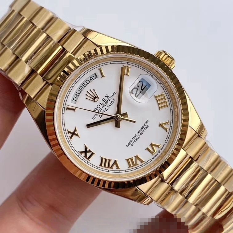 - Vintage Elegance: Merges 18K yellow gold with Roman numerals, paying homage to the Day-Date’s iconic heritage.