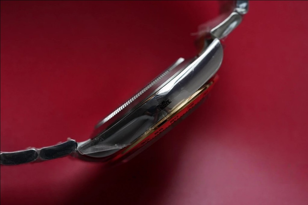 - Two-Tone Metal Bracelet: Polished 18K gold + 904L steel, durable, elegant, matches bezel’s gold numerals.