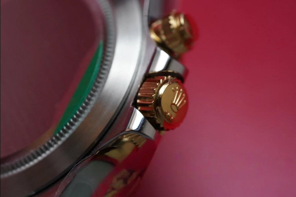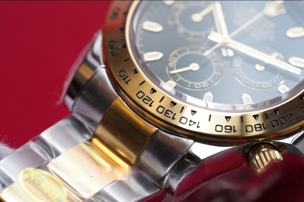 - Cerachrom Bezel (Gold-Coated): Scratch-resistant ceramic, gold tachymeter scale – sporty-luxury durability.