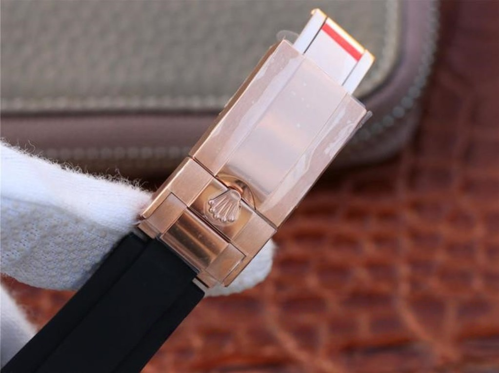 - Black Oysterflex Rubber Strap: Durable, sporty, paired with rose gold clasp for comfort and style.