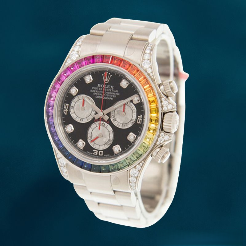 - Exceptional Craftsmanship: Every detail, from the precision – set gemstones to the engraved Rolex logo, showcases Rolex’s commitment to quality. The watch retains the classic Daytona charm while incorporating a unique rainbow – inspired twist.