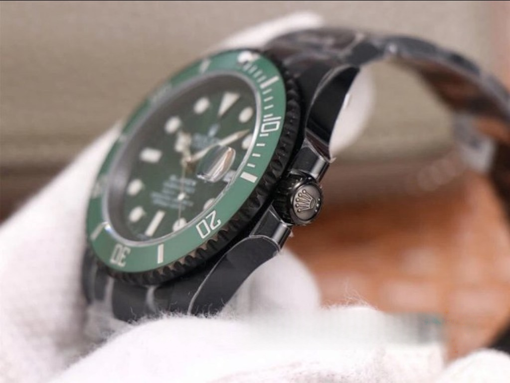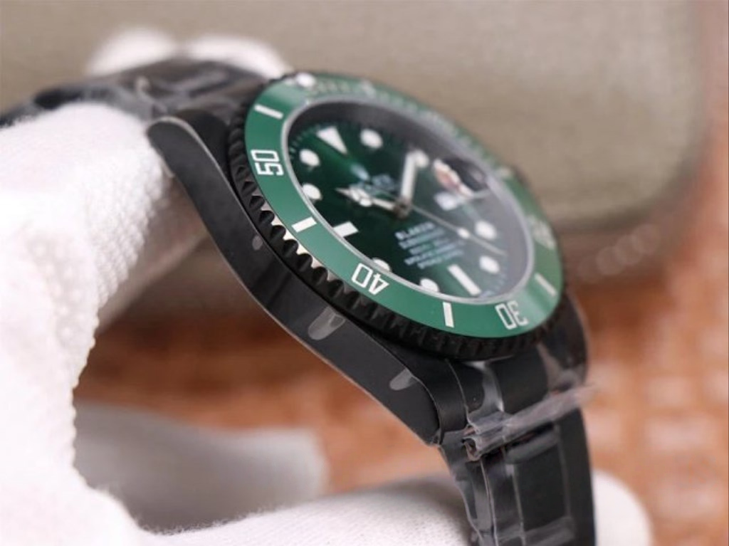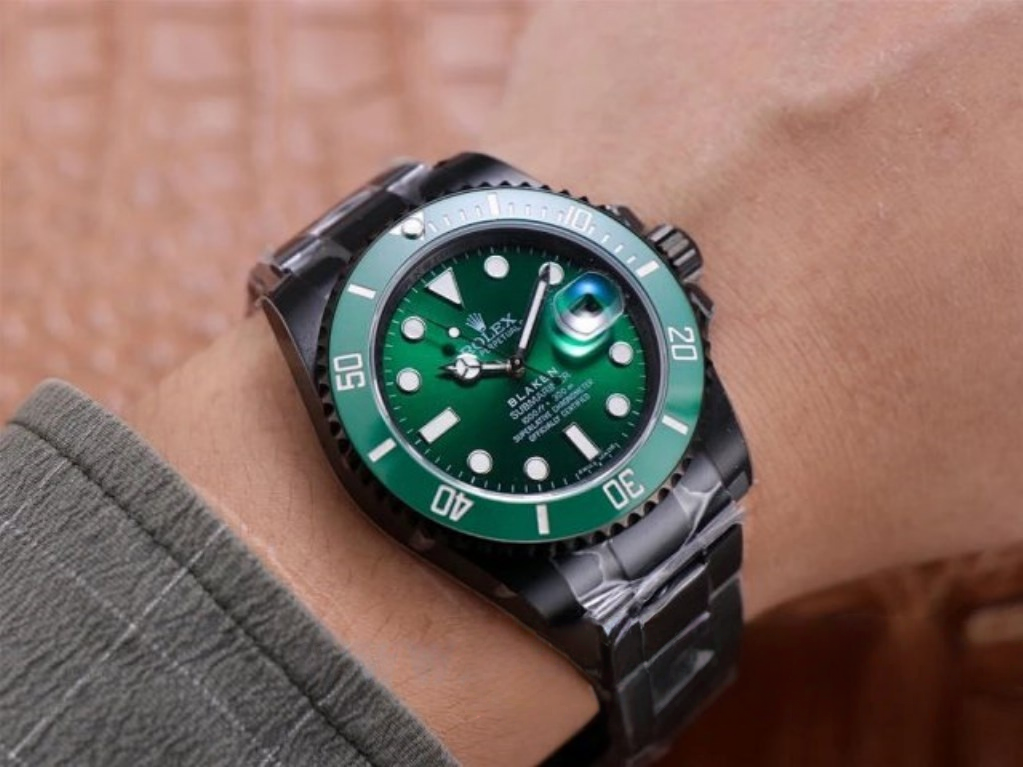 Introducing the ROLEX DIW Submariner PARAKEET Green Watch, a custom masterpiece with a gradient green dial and carbon fiber bezel. Experience unparalleled style and craftsmanship with this unique timepiece.