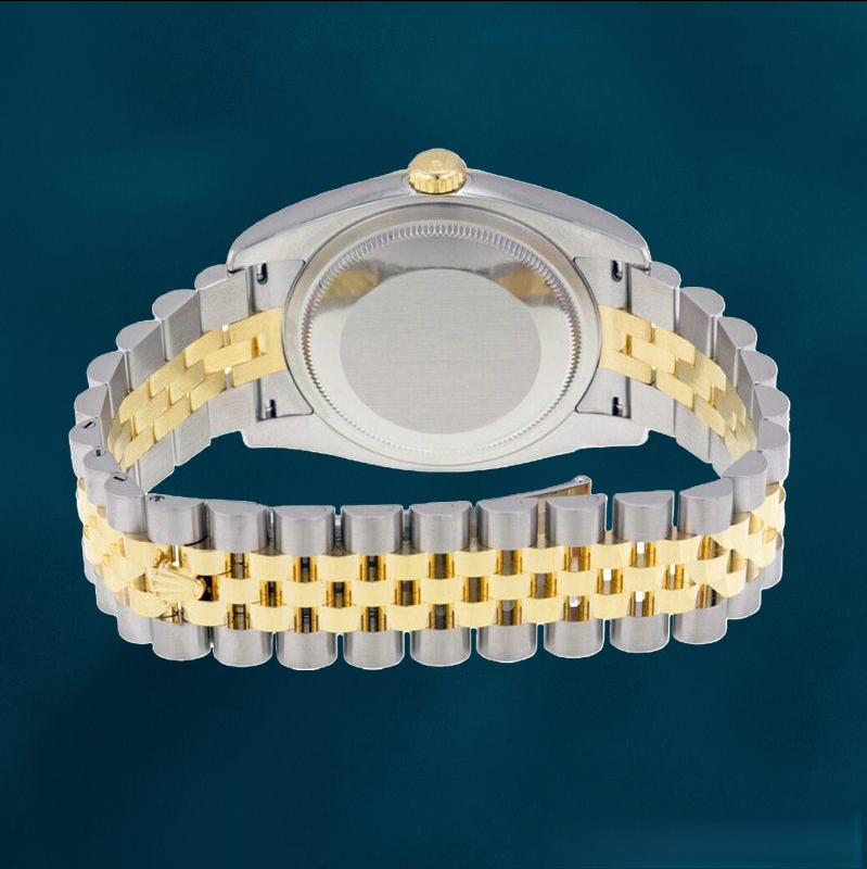 2. Black Dial: With clear Rolex – branded markings for a classic look.