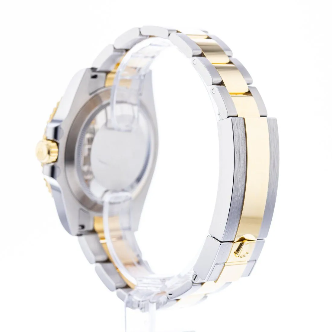 - Two – tone Oyster Bracelet: Brushed stainless steel outer links with polished 18k yellow gold center links, secured by an Oysterlock clasp and Glidelock extension for comfort and adjustability.