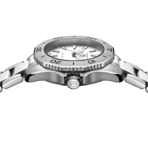 The TAG Heuer Aquaracer Women Quartz Silver Stainless Steel Watch WBP1411.BA0622 blends sporty – diver toughness with feminine elegance. Its 32mm steel case, silver dial, and stainless – steel bracelet suit daily wear and water adventures. With a rotating bezel, sapphire crystal, and 300M water resistance, it’s a chic, high – performance choice.