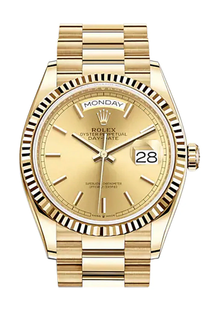 ROLEX DAY DATE CHAMPAGNE DIAL 18K YELLOW GOLD 36MM SWISS REPLICA m128238.0045